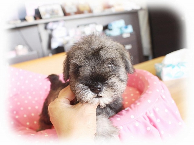 シュナウザーを主力にされているブリーダーさんだと認識しており、ボスちゃんはどうかなあと正直不安でしたがとても可愛く健康的なボスちゃんをいただきました。 掲載されていた写真より実物は想像以上に可愛くて即決し見学させていただいたその日に連れて帰りました。連絡をして、翌日行きますぅって勝手な申し出にも関わらず敏速かつ親切に対応して頂き大満足です。契約に対しても一つ一つ丁寧に説明してくださり、わかりやすかったです。この度は可愛いボスちゃんとのご縁をいただき、本当に有り難うございました。 (大阪府 女性)