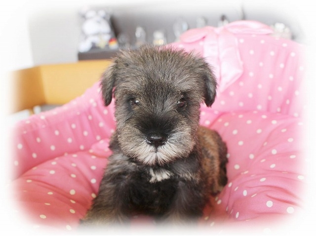 シュナウザーを主力にされているブリーダーさんだと認識しており、ボスちゃんはどうかなあと正直不安でしたがとても可愛く健康的なボスちゃんをいただきました。 掲載されていた写真より実物は想像以上に可愛くて即決し見学させていただいたその日に連れて帰りました。連絡をして、翌日行きますぅって勝手な申し出にも関わらず敏速かつ親切に対応して頂き大満足です。契約に対しても一つ一つ丁寧に説明してくださり、わかりやすかったです。この度は可愛いボスちゃんとのご縁をいただき、本当に有り難うございました。 (大阪府 女性)