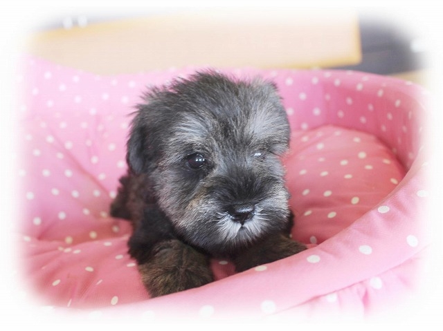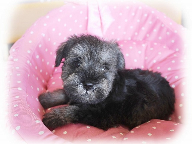シュナウザーを主力にされているブリーダーさんだと認識しており、ボスちゃんはどうかなあと正直不安でしたがとても可愛く健康的なボスちゃんをいただきました。 掲載されていた写真より実物は想像以上に可愛くて即決し見学させていただいたその日に連れて帰りました。連絡をして、翌日行きますぅって勝手な申し出にも関わらず敏速かつ親切に対応して頂き大満足です。契約に対しても一つ一つ丁寧に説明してくださり、わかりやすかったです。この度は可愛いボスちゃんとのご縁をいただき、本当に有り難うございました。 (大阪府 女性)