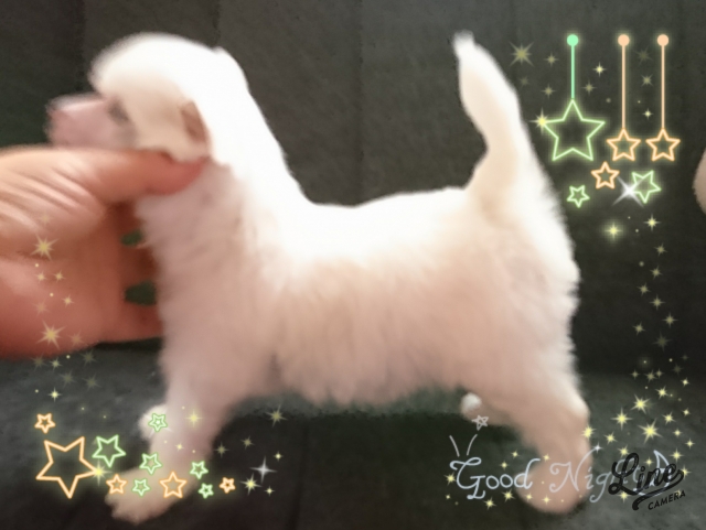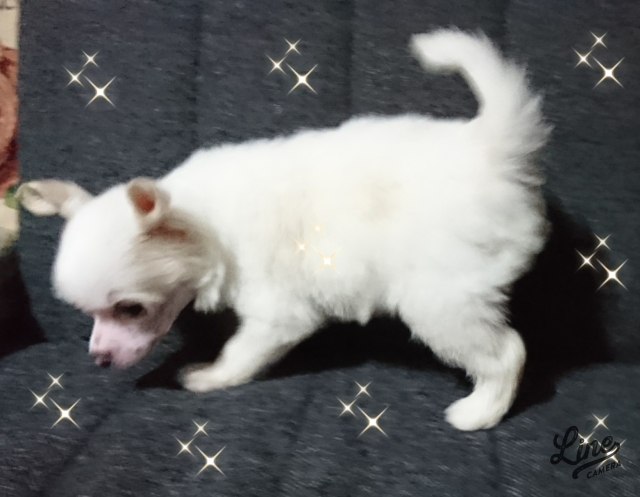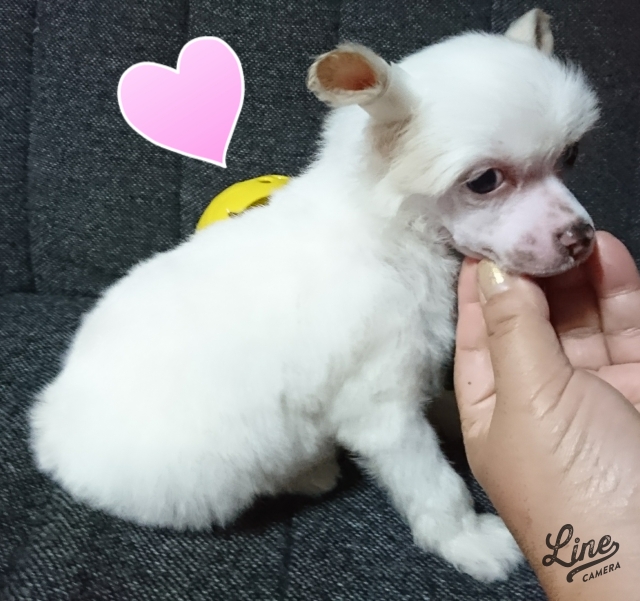 | コメント | 今回は、パウダーパフ同士の交配で生まれました~ ほぼホワイトですが、耳に薄くクリーム色が入ってます。 わからない位になります!成犬になるとホワイトに! 今、鼻の色は、まだらですが出てきますので大丈夫です。 サイズも4kg前後なので飼育しやすいです。 お顔もキレイで上品です |