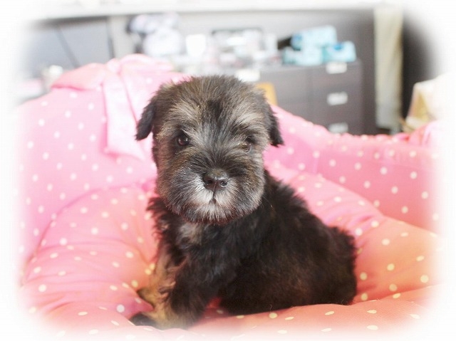 シュナウザーを主力にされているブリーダーさんだと認識しており、ボスちゃんはどうかなあと正直不安でしたがとても可愛く健康的なボスちゃんをいただきました。 掲載されていた写真より実物は想像以上に可愛くて即決し見学させていただいたその日に連れて帰りました。連絡をして、翌日行きますぅって勝手な申し出にも関わらず敏速かつ親切に対応して頂き大満足です。契約に対しても一つ一つ丁寧に説明してくださり、わかりやすかったです。この度は可愛いボスちゃんとのご縁をいただき、本当に有り難うございました。 (大阪府 女性)