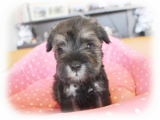 | コメント | パパ JKCチャンピオン セブン君(自家繁殖犬) ママ JKCチャンピオン直娘 音花ちゃん(自家繁殖犬) とっても可愛い両親から誕生したとっても可愛い男の子です☆ とってもとっても可愛い優しい目をした男の子♪ 優しいお顔の美男子君です! ソルト&ペッパーの濃淡はこれからどんどん出てきます! 大人になる頃には見事に変身しているでしょう^^ とても綺麗な良い子に仕上がってくれるでしょう。 欠点等ありません。 ★ 対面販売に伴い 遠方の方でご見学が難しい場合ご相談ください。 ★ 通常 翌日までにご返信させていただきますが ドッグショー出陳 遠方へお届け等でご返信が遅くなることがございます。 急ぎでご返信希望の方はお問い合わせの際 その旨ご記入いただけますと 出来る限り早くご対応させていただきます。 |