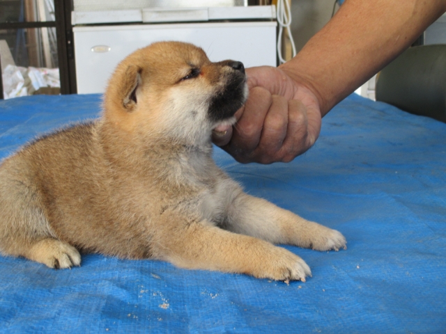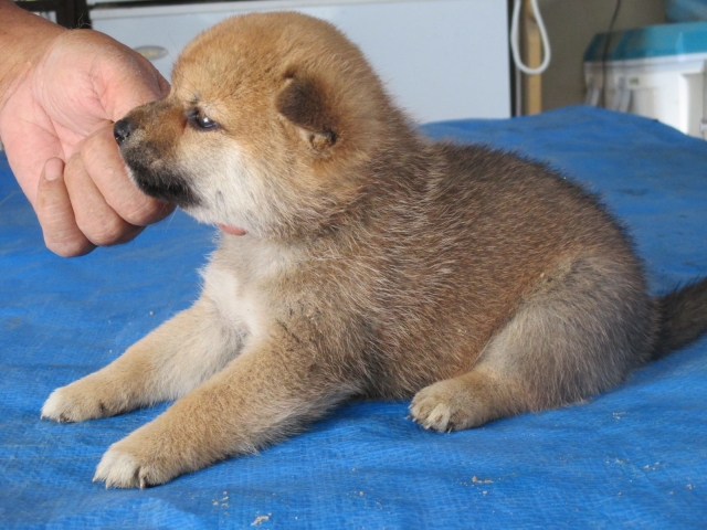 初めて見学で伺った際に、並んで日向ぼっこをしている親犬たちを見て、その時点で高橋さんなら安心だと感じました。事前に希望していたこともあり、母犬と父犬を先に見せていただきましたが、母犬のあまりの人懐こい性格にやられてしまい、実は子犬を見る前に是非譲っていただこうという気持ちになっておりました。 見学の時、譲渡の時といろいろな話をさせてもらい、小さな気付きなども折り込んで教えてもらえるのでやはり柴犬ならこうした専門の方が信頼出来ます。 子犬が我が家に来て二週間が経ち、きょうだいのなかでも一回り小さかったこともあり、やはり成長もやや遅い感じではありますが、母性を刺激された先住犬が頑張って見守ってくれており、予想外ではあるものの家族全員一安心です。 この度は本当にありがとうございました。この子が幸せになれるよう精一杯向き合っていきます。 なお、今後検討されている方への注意事項をひとつだけ書いておきます。問い合わせや見学希望に対しての高橋さんからの返信は電話です。メールでの返信ではありませんので気を付けてください。(宮城県 男性)