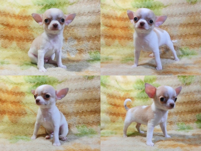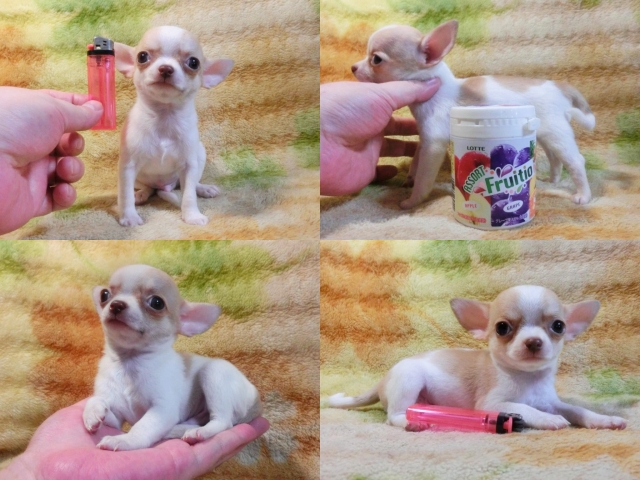 | コメント | 超!!極小サイズめちゃキュ-ト!! 幼顔でめっちゃ愛らしい男の仔♪ スタイル抜群お鼻の長さも程よくクリックリな大きな瞳で超可愛い!! 短かめスムースブレーズも入って白茶配色バランスも良い綺麗な毛色^^ 小さくてもとっても元気他のティーカップ兄弟たちと仲良く遊んでます♪ 人や子供の手にも充分に慣れとっても懐っこいフレンドリーな仔ですよ^^ 生後60日の体重は約500g成犬時の予想体重1.5kg位だと思います☆ 無理に小さく育ててる極小ちゃんとは違ってとても元気な健康優良児♪ 身体のバランスがとても良くしっかりした硬い胴で骨量の多い丈夫な仔☆ 現状噛合せや骨格・関節形成など問題無く欠点の心配はありません!! 離乳も済み食欲も旺盛でドライのままカリカリ!!いつでもお引き渡しOK♪ 素敵なご家族様からのお問い合わせ、お迎えをお待ちしております^^ 【その他諸費用】 6種ワクチン接種費用:6千円【税・画像入証明書付・健康診断込】 ※お迎えの場合で【生体代金】+【ワクチン接種費用】のみです。 ●血統書登録団体:JKC(※3ヵ月以上要す事もあります) |