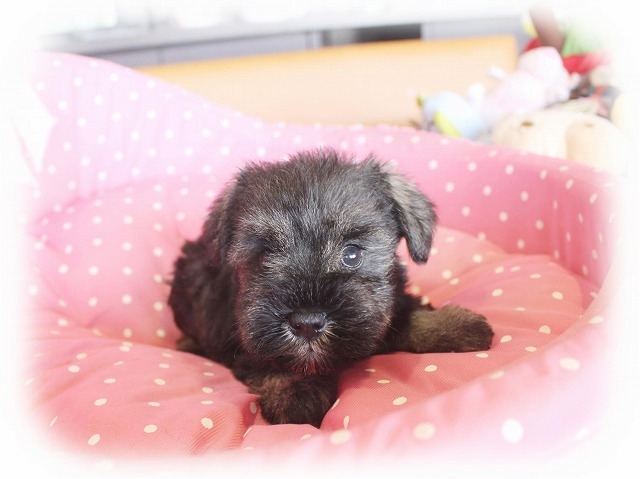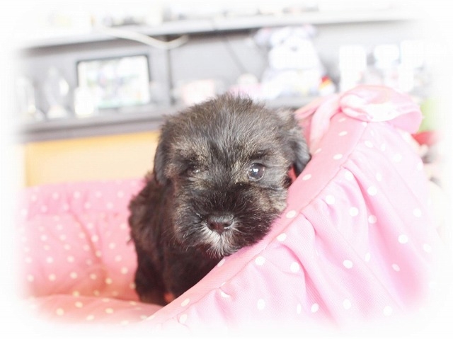 シュナウザーを主力にされているブリーダーさんだと認識しており、ボスちゃんはどうかなあと正直不安でしたがとても可愛く健康的なボスちゃんをいただきました。 掲載されていた写真より実物は想像以上に可愛くて即決し見学させていただいたその日に連れて帰りました。連絡をして、翌日行きますぅって勝手な申し出にも関わらず敏速かつ親切に対応して頂き大満足です。契約に対しても一つ一つ丁寧に説明してくださり、わかりやすかったです。この度は可愛いボスちゃんとのご縁をいただき、本当に有り難うございました。 (大阪府 女性)