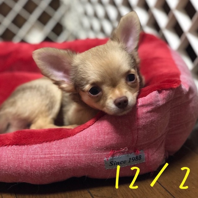 | コメント | パパはチョコタンのアラン君 ママはフォーンのダグちゃん トイレトレーニングほぼ完璧です! かりかり二回食です! 初回ワクチンを10/30に接種しました! 2回目のワクチン接種を12/3にしました! 次回ワクチン接種は2018/12/3ごろです。 お引き渡し時にいつも食べている餌を一キロ、愛用の毛布もしくはベットをお渡しいたします! ペット保険の取り扱い、お引き渡し後の躾相談もお受けしています! |