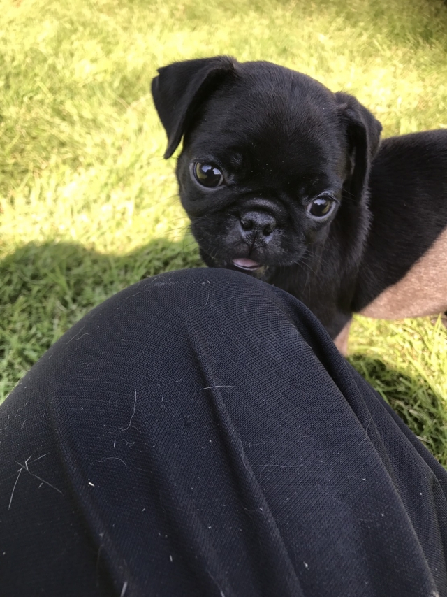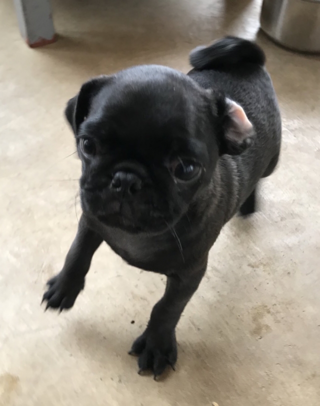 今日、黒パグ(雄)を見学に行きました。これまで、パグのフォーンとブラックを飼ってきましたが、どちらも雌でおとなしかったので、できれば雌がいいなという思いと、雄で大丈夫かなという不安があり、とりあえず見学のつもりで出かけました。見せて頂いた黒パグは表情豊かでとても可愛いく、本間さんとお話している間にすっかりなついてしまい、不安もなくなり購入を決めました。本間さんには、爪の切り方や耳そうじの仕方、歯磨きやえさの与え方、しつけまで丁寧に教えて頂きました。これまでは忙しくてきちんとしつけができなかったので、とても参考になりました。そのまま連れて帰りましたが、夜帰宅した夫も息子も新しい家族をみてとても喜んでいました。本間さん、本当にありがとうございました。(栃木県 女性)