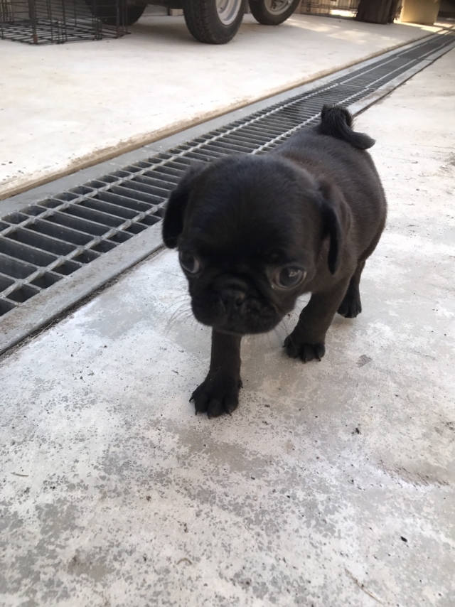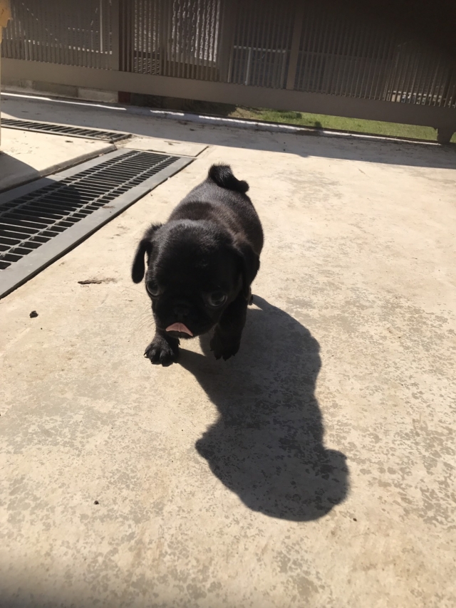 今日、黒パグ(雄)を見学に行きました。これまで、パグのフォーンとブラックを飼ってきましたが、どちらも雌でおとなしかったので、できれば雌がいいなという思いと、雄で大丈夫かなという不安があり、とりあえず見学のつもりで出かけました。見せて頂いた黒パグは表情豊かでとても可愛いく、本間さんとお話している間にすっかりなついてしまい、不安もなくなり購入を決めました。本間さんには、爪の切り方や耳そうじの仕方、歯磨きやえさの与え方、しつけまで丁寧に教えて頂きました。これまでは忙しくてきちんとしつけができなかったので、とても参考になりました。そのまま連れて帰りましたが、夜帰宅した夫も息子も新しい家族をみてとても喜んでいました。本間さん、本当にありがとうございました。(栃木県 女性)