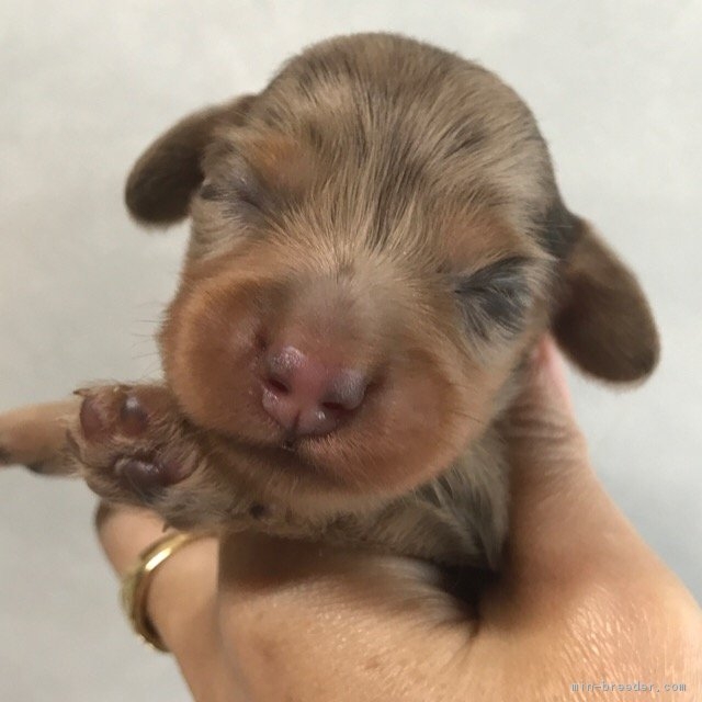ミニチュア・ダックスフンド(ロング) チョコレート・ダップル ♀(女の子) 宮崎県【 ブリーダーズ 】