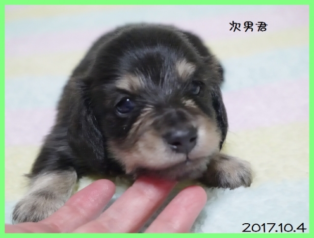 亡くなった愛犬達と同じ、 ワイヤーダックスの子犬を探していましたが、珍しい犬種という事もあり、 なかなか出会えませんでした。 諦めかけた頃、こちらのサイトで可愛い子犬を見つけ、思いきってメールをさせて頂きました。 遠藤ブリーダー様の迅速丁寧な対応で、 お陰様で無事に子犬を迎える事が出来ました。 本当にありがとうございました。 ブリーダーズ様にも感謝致します。 (北海道 女性)