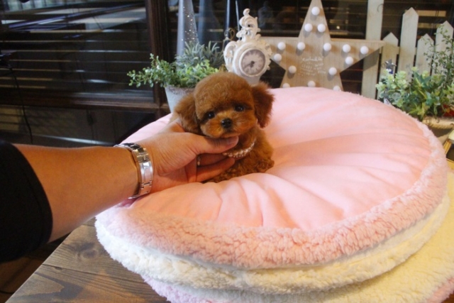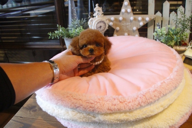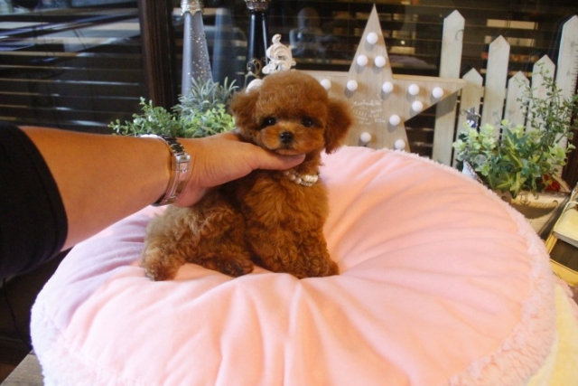 | コメント | 父犬1.2kg 母犬2.3kg この子は売りたくない! 只々、その一言でございます。 見れば一目でわかるその美しさ 本物の仔を是非お迎えください ペットショップやオークション出しのブリーダーと違い欧米のブリーディング同様、親や兄弟と社会期を過ごさせることで 人間と暮らした時にスムーズに暮らせるようにしております。 親犬達も家族として朝7時からドックランで遊び、全室冷暖房完備の部屋で過ごし、専門のスタッフや専門学校の方々と協力し合いながら 衛生管理に努めております。 犬舎の特徴としましては、東京や神奈川近郊の為マンションのお客様が8割を占めます。その為小さな1キロから2.8キロまでに収まるように、 母犬を2.8キロまでと決めてブリーディングをしている為、後で極端に大きくなる子はいません。 瞳の丸く大きなところやマズル(鼻先)が短いもの特徴で、父犬、母犬、全て私が全国の可愛いトイプードルを一頭、一頭厳選して親犬としてブリーディングした子犬のみを掲載しております。 こだわりとしては、お客様がお迎えされた後、その子がTV出演、雑誌やカレンダーのモデルとして活躍の場が増え我が家を忘れないでいてもらいたい為、 本気でこだわりを持って常にトイプードルを飼うなら此処だと皆様全員に思われる犬舎でありたいと思います。 ありがたいことに今では、雑誌やTV出演、カレンダーなど多くの出身トイプードルちゃんたちが可愛く撮影されお客様からも喜びの声を頂いております。 我が家は35頭の小さな犬舎ではありますが、頭数が多いところでは管理が行き届かない、PRA若年性白内障などの遺伝性疾患の発症がないように努めております |