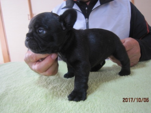 | コメント | 父親はJKCチャンピオンです! 頭が大きくショートボディで カッコイイ体型です!毛色はクリームです。 母親はインターナショナルチャンピオン直子です!真っ黒で綺麗な毛色です。クリクリお目目の可愛い顔をしています。 子犬は母親似のクリクリお目目のかわいい顔で、真っ黒で綺麗なブリンドルの男の子です。両親とも当犬舎におりますのでご覧いただけます。 急な見学にも対応させて頂きますので ぜひ直接ご覧ください。よろしくお願いいたします。 |
