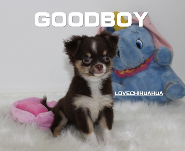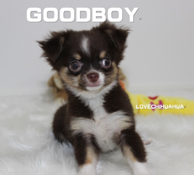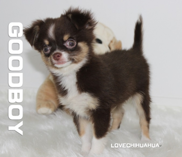 チワワ(ロング) チョコレートタン&ホワイト ♂(男の子) 岡山県【 ブリーダーズ 】