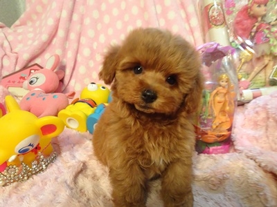 | コメント | お父さん・・チワワ お母さん・・プードル まんまるお目目で幼いお顔が 可愛い子です お鼻も短く詰まっていて お顔全体が丸い感じです 毛質はプードル寄りで毛量が有り カールも有ってふわふわです 抜け毛は気になりません 少し短めな足で歩く姿が 幼くて可愛らしいです 活発な性格で行動的で甘えん坊 な子です 胸に少し有る白い毛がポイントで 可愛いです 大人になって2,5㎏前後の 可愛いサイズの仕上がり予想です 健康診断、1回目のワクチン済みました |