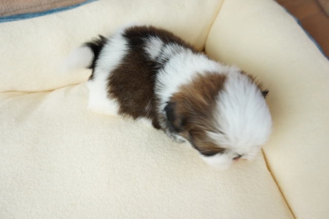 シーズー仔犬をお譲りいただきました。人間が大好き、散歩も大好き。ごはんの食いつきも凄いです。初めて犬を飼いますが、ごはんの量など分かりやすく説明していただき助かりました。 とっても元気にしております。可愛い過ぎてもう1匹欲しいです。 生涯大事にします。ありがとうございました。(京都府 女性)