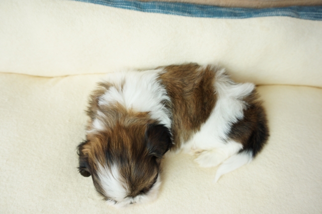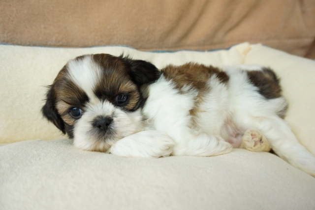シーズー仔犬をお譲りいただきました。人間が大好き、散歩も大好き。ごはんの食いつきも凄いです。初めて犬を飼いますが、ごはんの量など分かりやすく説明していただき助かりました。 とっても元気にしております。可愛い過ぎてもう1匹欲しいです。 生涯大事にします。ありがとうございました。(京都府 女性)