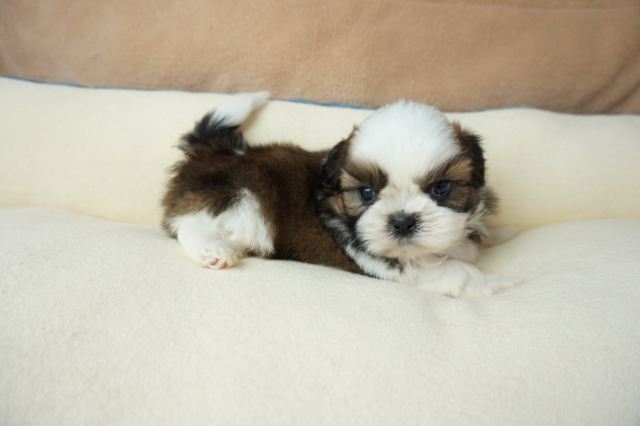 シーズー仔犬をお譲りいただきました。人間が大好き、散歩も大好き。ごはんの食いつきも凄いです。初めて犬を飼いますが、ごはんの量など分かりやすく説明していただき助かりました。 とっても元気にしております。可愛い過ぎてもう1匹欲しいです。 生涯大事にします。ありがとうございました。(京都府 女性)
