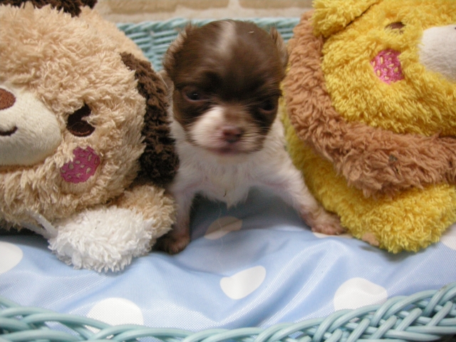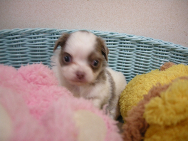 | コメント | お母さんチョコクリームの『クリル』ちゃん! お父さんホワイト&ブラックの『ムック』君。 しかもPRAクリアー❗ 極少チワワちゃんです。 2キロ以内のチワワちゃんになりますよ❕ はじめましてのワンちゃんの方 にも飼いやすい超小型犬です。 全てアドバイスさせて頂きます❗ 皆様からのお問い合わせ、ご見学おまちしています。 大阪市住吉区 濱田 |