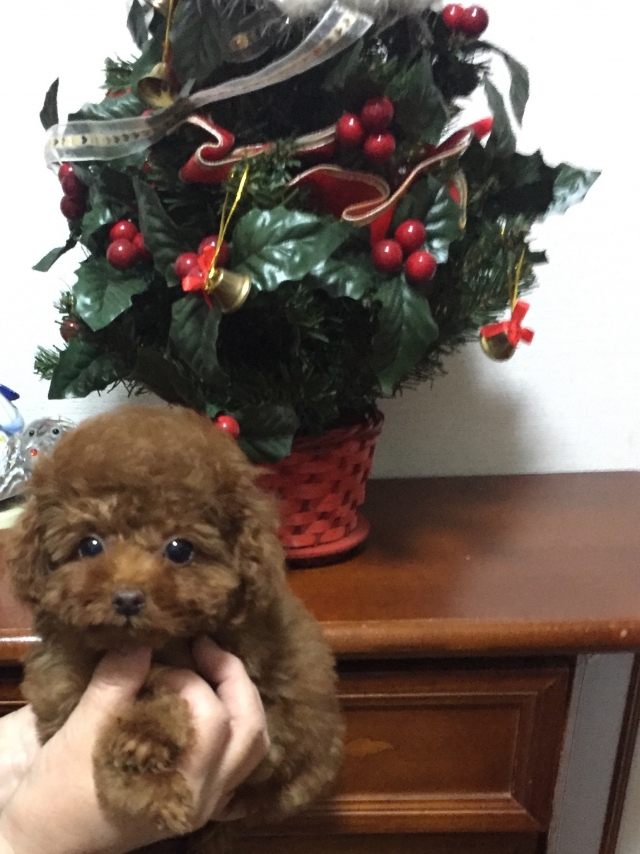 | コメント | お父さん:レッド 1.4kg 我が家の看板犬のタルト君 いつまでも仔犬の様な可愛いお父さん お母さん:レッド 2.2kg とても頭の良い可愛いお母さんです 前回、前々回も同じ掛け合わせで1.4kg~1.8kgの可愛い子供達が生まれています。 体は小さいけれどまん丸と肥えた可愛い女の子で、人気の足の短なドワーフタイプです。 毛量も有り巻きも成長と共にしかりと巻く毛質です。 生後90日目 11/19 計量 665g 最近の成長を見ていると成犬時の予想体重はマイクロサイズの1.2kg~1.4kg位を予想しています。 沢山のお問い合わせをお待ちしています。 |