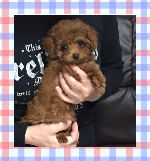 | コメント | お父さん:レッド 1.4kg 我が家の看板犬のタルト君 いつまでも仔犬の様な可愛いお父さん お母さん:レッド 2.2kg とても頭の良い可愛いお母さんです 前回、前々回も同じ掛け合わせで1.4kg~1.8kgの可愛い子供達が生まれています。 体は小さいけれどまん丸と肥えた可愛い女の子で、人気の足の短なドワーフタイプです。 毛量も有り巻きも成長と共にしかりと巻く毛質です。胸元に白い毛が少しあります。 生後90日目 11/19 計量 685g 最近の成長を見ていると成犬時の予想体重はマイクロサイズの1.2kg~1.4kg位を予想しています。 沢山のお問い合わせをお待ちしています。 |
