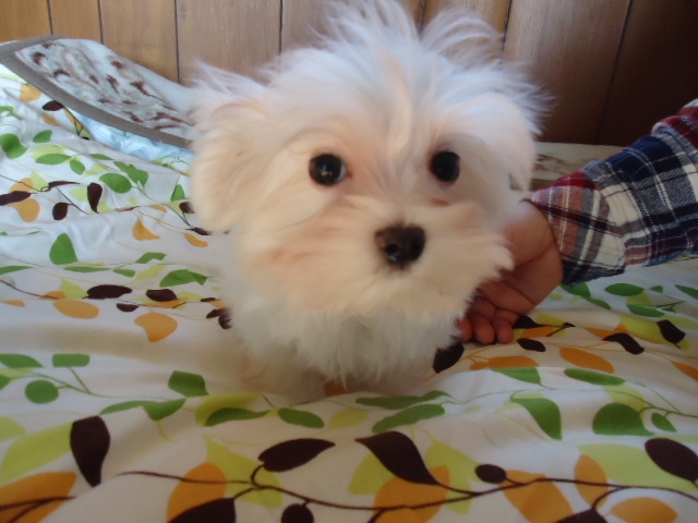 この度ご縁がありまして村島ブリーダーさんから可愛いマルチーズの男の子を譲って頂きました。犬を飼うことは初めてだったのですが2度ほど見学し、アドバイスも頂き、安心して子犬を迎えることができました。何かあれば電話でいつでも相談にのって下さるとのことで心強いです。子犬もとても元気でおトイレもすぐに覚えてとってもいい子です。ありがとうございました。(栃木県 女性)