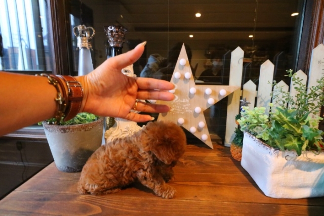 本日、我が家に小さな可愛い女の子のトイプードルがやって来ました。 遠距離という事もあり、暑い時期、飛行機の事なども心配していましだが、家に着いた途端、元気に走り、食欲も旺盛で、今まで大切に育てられてきたのだなぁ、ということがよくわかりました。 連休中にも関わらず、戸田様には、伊丹空港まで連れて来て頂き、こちらの質問にも的確に答えて下さいました。 大変信頼できるブリーダーです。 遠距離で悩まれている方も、安心して新しい家族を迎えられますよ。(兵庫県 男性)