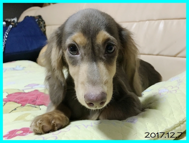 亡くなった愛犬達と同じ、 ワイヤーダックスの子犬を探していましたが、珍しい犬種という事もあり、 なかなか出会えませんでした。 諦めかけた頃、こちらのサイトで可愛い子犬を見つけ、思いきってメールをさせて頂きました。 遠藤ブリーダー様の迅速丁寧な対応で、 お陰様で無事に子犬を迎える事が出来ました。 本当にありがとうございました。 ブリーダーズ様にも感謝致します。 (北海道 女性)