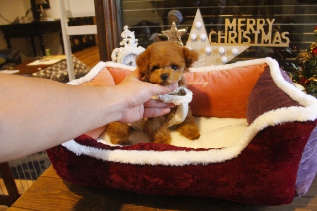 本日、我が家に小さな可愛い女の子のトイプードルがやって来ました。 遠距離という事もあり、暑い時期、飛行機の事なども心配していましだが、家に着いた途端、元気に走り、食欲も旺盛で、今まで大切に育てられてきたのだなぁ、ということがよくわかりました。 連休中にも関わらず、戸田様には、伊丹空港まで連れて来て頂き、こちらの質問にも的確に答えて下さいました。 大変信頼できるブリーダーです。 遠距離で悩まれている方も、安心して新しい家族を迎えられますよ。(兵庫県 男性)