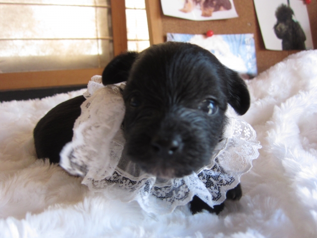チャコと名付けたこの子の引き取りが遅れたのは、私の都合でした。足の故障から寒い時期に座ることができず悩んでいると、{いつでもいいですよ}と言っていただき名前を決めて呼んでくださり、.途中経過の様子や写真を送ってくださいました。3月3日に安心して迎えました。 とても元気で可愛くて何をしても許してしまいそうです。 夜泣きも一晩目だけで朝まで寝てます。お散歩に行けるようになるのが待ち遠しいです。チャコが来てからも金子さんにはいろいろご指導いただいています。チャコとの出会いに感謝しています。有難うございました。 (広島県 女性)