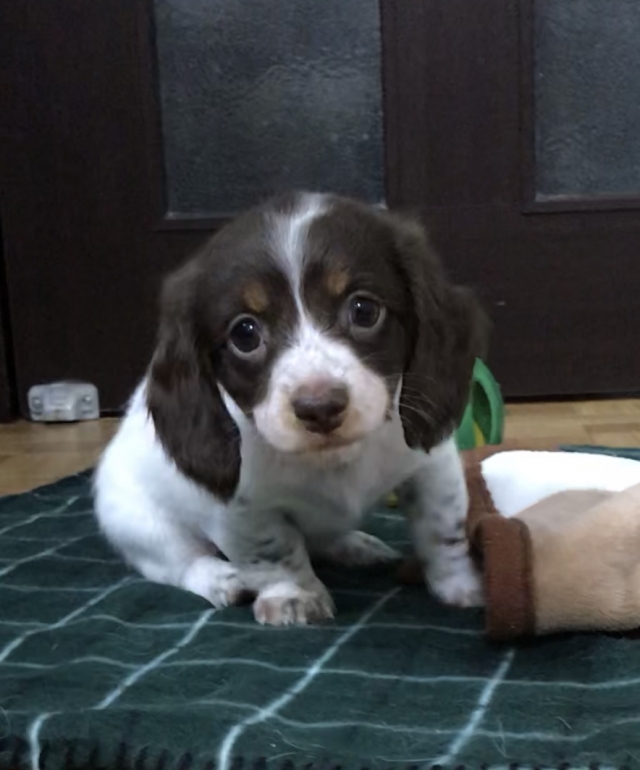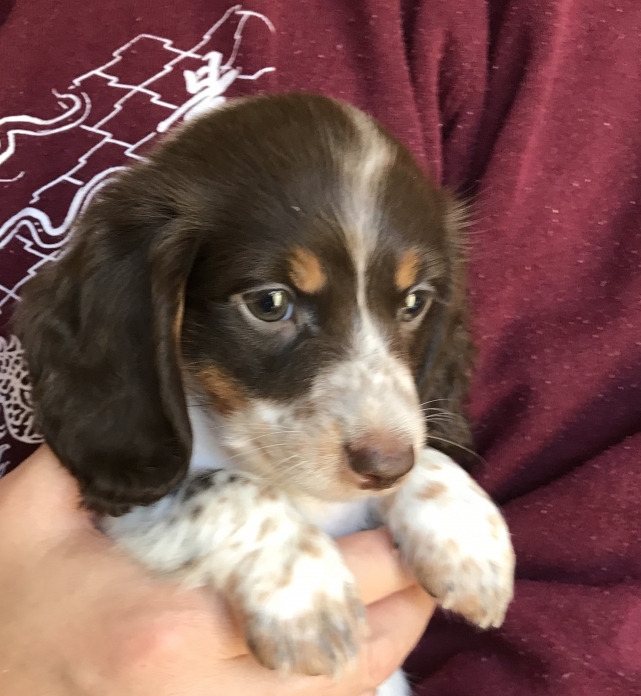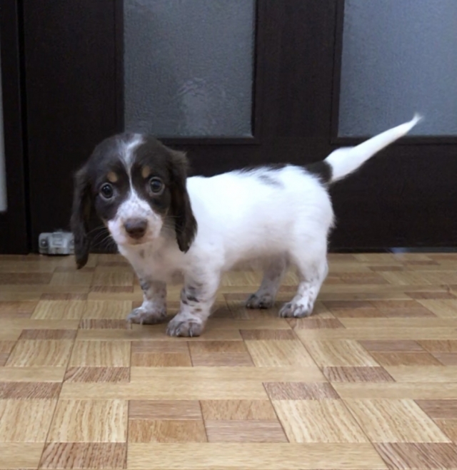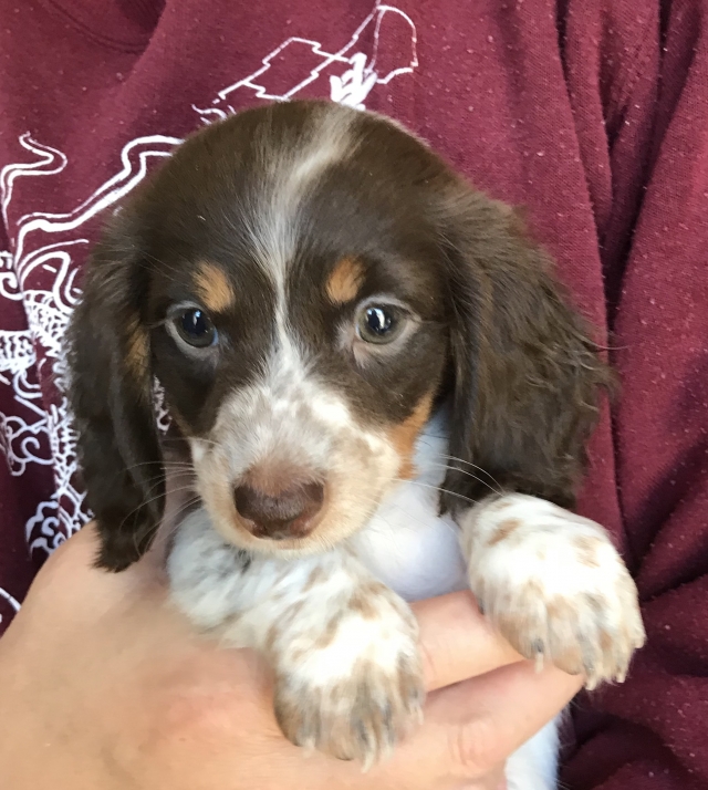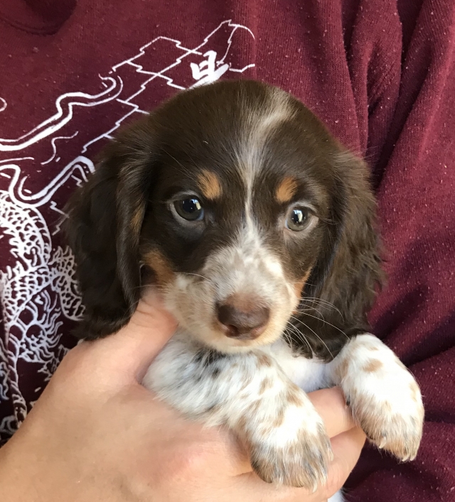 ミニチュア・ダックスフンド(ロング) チョコレートタン パイボールド ♀(女の子) 神奈川県【 ブリーダーズ 】