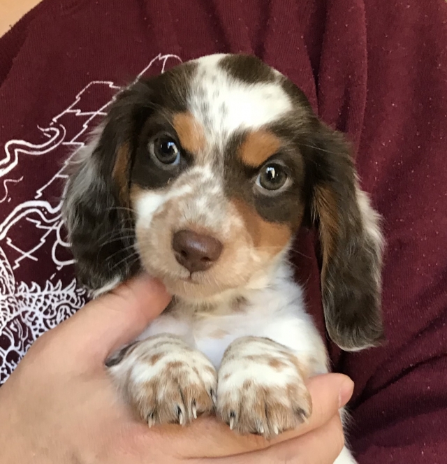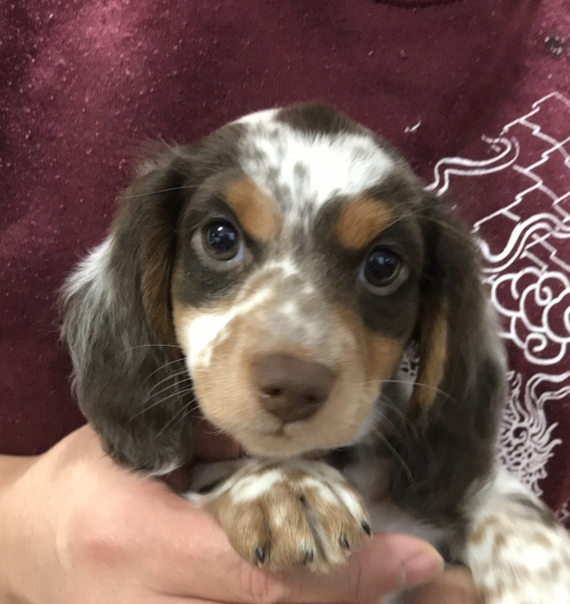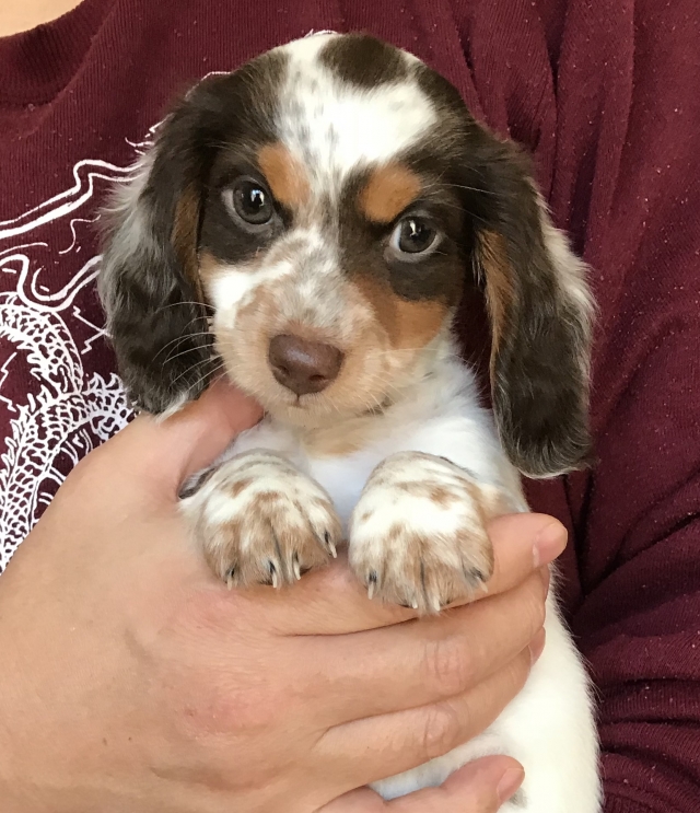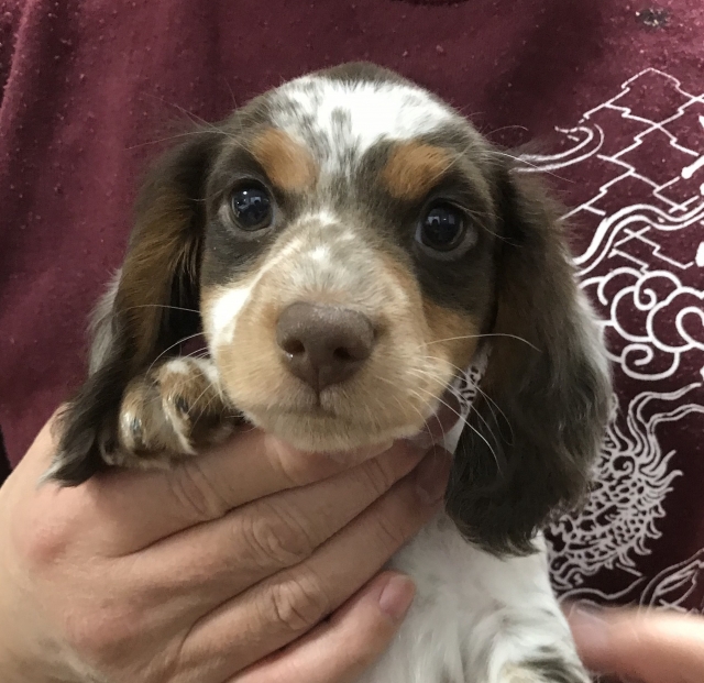 ミニチュア・ダックスフンド(ロング) チョコレートタン パイボールド ♂(男の子) 神奈川県【 ブリーダーズ 】