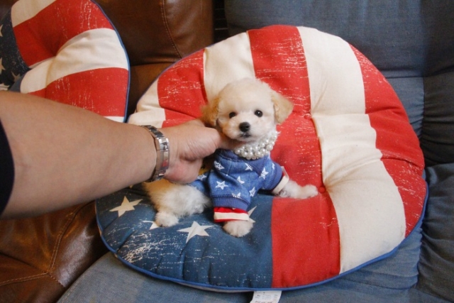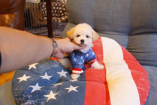 本日、我が家に小さな可愛い女の子のトイプードルがやって来ました。 遠距離という事もあり、暑い時期、飛行機の事なども心配していましだが、家に着いた途端、元気に走り、食欲も旺盛で、今まで大切に育てられてきたのだなぁ、ということがよくわかりました。 連休中にも関わらず、戸田様には、伊丹空港まで連れて来て頂き、こちらの質問にも的確に答えて下さいました。 大変信頼できるブリーダーです。 遠距離で悩まれている方も、安心して新しい家族を迎えられますよ。(兵庫県 男性)