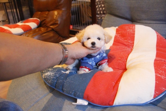 ネットでの契約となり、引き渡しまで会えませんでしたが丁寧に対応して頂きました。契約までは、小さなことでも質問に答えてもらいまた契約して引き渡しまで時間がありました。成長過程や様子など写真を送って頂いたりと細かい部分まで対応して頂きました。受け渡し当日は、遠方からだったため不安でしたが到着してすぐに顔をみたら元気いっぱいでした。また、お顔なども一目惚れした通りにわんちゃんでした。引き渡し後も質問にのって頂き感謝感謝です。これからもよろしくお願いします。(熊本県 女性)