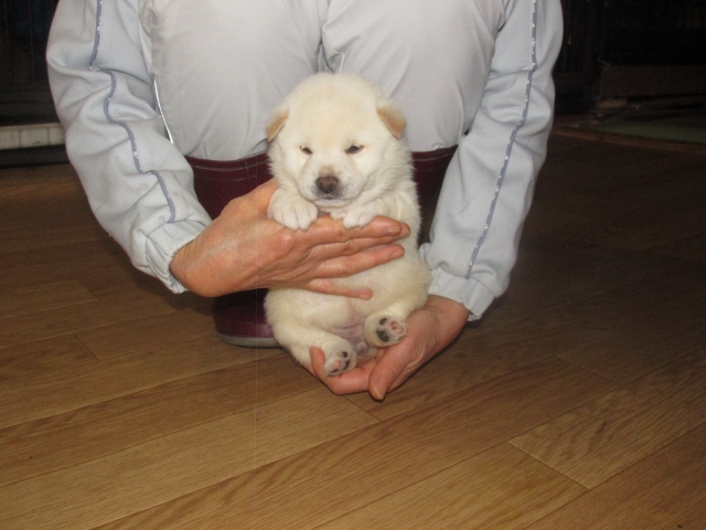 亀井さんとメールや電話で12月13日に待ち合わせ場所で仔犬を初めて見せていただき、ネットで見ていた仔犬よりも、とても可愛い仔犬で気に入りました。亀井さんと奥様も優しそうな方で、愛情をもって犬と過ごしていると想像します。又、リードや数日のフードなども頂きとても良心的で感謝しています。有難うございました。 (和歌山県 男性)(和歌山県 男性)