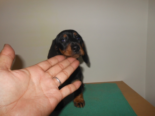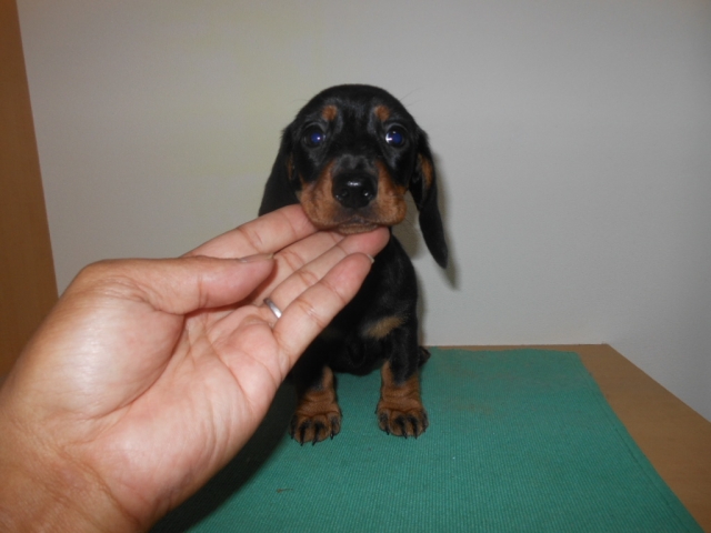 ミニチュアダックス スムース ブラックタンの子犬を探しまくる中、ブリーダーズさんのサイトから上山ブリーダーさんに辿り着きました。問合せ後すぐに連絡を頂き訪問に至る迄の間、度重なる問合せにメール、電話にて毎回本当に親切丁寧にお応え頂きました。神奈川県からでしたが安心して伺う事ができました。子犬対面当日は…なんと可愛い子犬でしょー!毛も艶々で元気いっぱいです!子犬、親犬の事やお世話の仕方、持ち帰り時の注意点等詳しく教えて頂き大切に育ているんだなぁと実感しました。連れ帰った後も子犬の状態を気にして連絡を下さいました。これからも相談させて頂こうと思っています。親切で知識も豊富な信頼できるブリーダーさんです。今回は元気で可愛い子犬をありがとうございました。(神奈川県 女性)