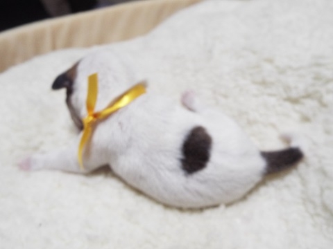 | コメント | 父親・・・白茶・スム-ス 母親・・・白茶・ブロ-クン(温厚な性格) 断尾はしませんのでご了承下さい。 目が開きましたら画像を更新します。 左右対称に綺麗なフレ-ズです。 生後2週間程で目が開きます。 目が開くと可愛さ満点です。 生後45日で初回ワクチン接種、健康診断、検便等 獣医でしてからのお渡しになります。 今なら血統書名に呼び名をお付け出来ます。 見学大歓迎! お気軽にお問合せ下さい。 |
