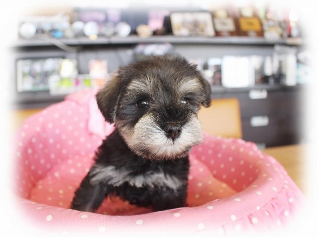 シュナウザーを主力にされているブリーダーさんだと認識しており、ボスちゃんはどうかなあと正直不安でしたがとても可愛く健康的なボスちゃんをいただきました。 掲載されていた写真より実物は想像以上に可愛くて即決し見学させていただいたその日に連れて帰りました。連絡をして、翌日行きますぅって勝手な申し出にも関わらず敏速かつ親切に対応して頂き大満足です。契約に対しても一つ一つ丁寧に説明してくださり、わかりやすかったです。この度は可愛いボスちゃんとのご縁をいただき、本当に有り難うございました。 (大阪府 女性)