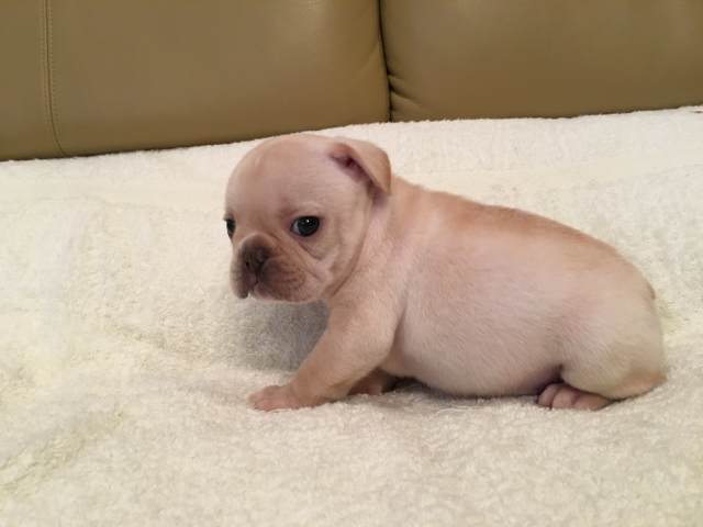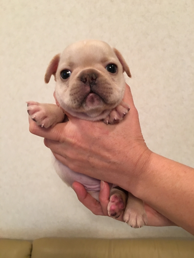 | コメント | お父さん犬クリーム(アメリカチャンピオン直子) お母さん犬クリームの両親から10月13日に元気に産まれました。 骨量もあり小振りで優しいお顔の男の子です。 離乳食もお腹いっぱい食べ、最近は兄弟でじゃれあって元気に育っています。 これから耳も次第に立ってきて益々フレンチらしくなってきます。 ご見学お待ちしています。 北関東自動車道の宇都宮上三川インターを降り小山方面に向かい7〜8分のわかりやすい場所です。 |