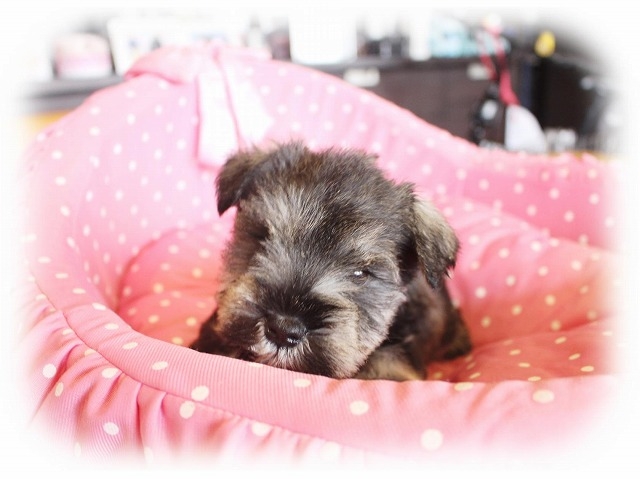 シュナウザーを主力にされているブリーダーさんだと認識しており、ボスちゃんはどうかなあと正直不安でしたがとても可愛く健康的なボスちゃんをいただきました。 掲載されていた写真より実物は想像以上に可愛くて即決し見学させていただいたその日に連れて帰りました。連絡をして、翌日行きますぅって勝手な申し出にも関わらず敏速かつ親切に対応して頂き大満足です。契約に対しても一つ一つ丁寧に説明してくださり、わかりやすかったです。この度は可愛いボスちゃんとのご縁をいただき、本当に有り難うございました。 (大阪府 女性)
