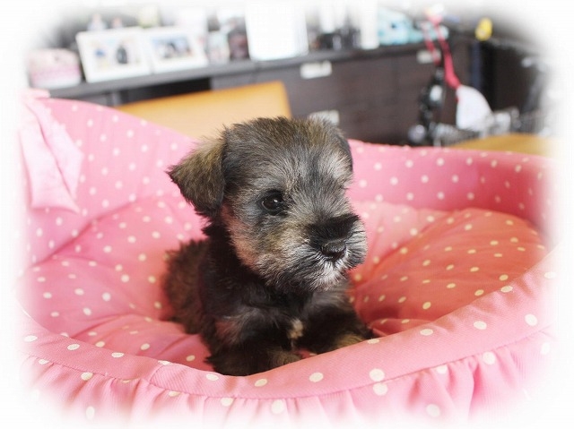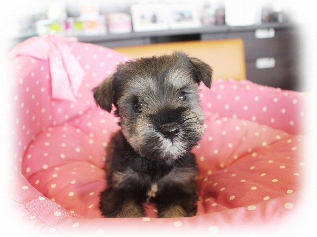 シュナウザーを主力にされているブリーダーさんだと認識しており、ボスちゃんはどうかなあと正直不安でしたがとても可愛く健康的なボスちゃんをいただきました。 掲載されていた写真より実物は想像以上に可愛くて即決し見学させていただいたその日に連れて帰りました。連絡をして、翌日行きますぅって勝手な申し出にも関わらず敏速かつ親切に対応して頂き大満足です。契約に対しても一つ一つ丁寧に説明してくださり、わかりやすかったです。この度は可愛いボスちゃんとのご縁をいただき、本当に有り難うございました。 (大阪府 女性)