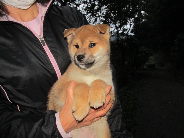 亀井さんとメールや電話で12月13日に待ち合わせ場所で仔犬を初めて見せていただき、ネットで見ていた仔犬よりも、とても可愛い仔犬で気に入りました。亀井さんと奥様も優しそうな方で、愛情をもって犬と過ごしていると想像します。又、リードや数日のフードなども頂きとても良心的で感謝しています。有難うございました。 (和歌山県 男性)(和歌山県 男性)