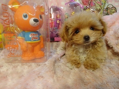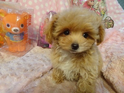 | コメント | お父さん・・チワワ お母さん・・プードル 真ん丸お目目が可愛い子です お鼻も短く幼いお顔立ちです 毛質は巻が有りプードルに 近い感じでふわふわです 胸の白い毛がタキシードを 着ている様で可愛らしいです 頭の上に少し、手足の先が白く手袋をしているみたいでまた可愛らしいです 甘えん坊で少しおっとり している性格で癒し系な子です 大人になって1.5㎏~2㎏ 以内の小さいサイズの仕上がり予想です 健康診断。1回目のワクチン済みです |