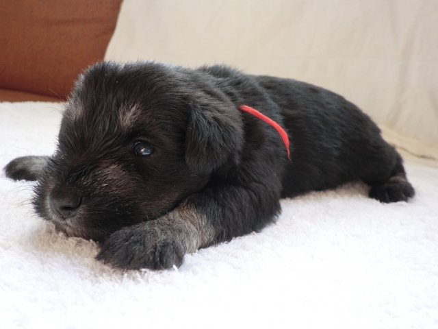 | コメント | 四番目に生まれた。女の子です。 現在は離乳食が始まり、元気に姉弟達と遊んでいます。 1300gになっています。 まだ毛色ははっきりしていませんが、判り次第 更新していきます。 また、成長過程もアップしていきますので 宜しくお願い致します。 両親犬の毛色:父犬は、ブラック&シルバー 母犬は、ソルト&ペッパー 両親犬の体重:父犬7kg、母犬6kg ご見学の際は、父犬と母犬もご覧頂けます。 お渡しする日まで、親犬、兄妹犬と一緒に 過ごしています。 ご見学希望の方は前もってご連絡下さい。 |