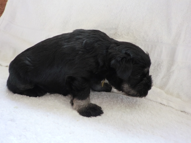 | コメント | 六番目に生まれた。女の子です。 現在は離乳食が始まりよく食べ元気に姉弟達と遊んでいます。 1360gになっています。 まだ毛色ははっきりしていませんが、判り次第 更新していきます。 また、成長過程もアップしていきますので 宜しくお願い致します。 両親犬の毛色:父犬は、ブラック&シルバー 母犬は、ソルト&ペッパー 両親犬の体重:父犬7kg、母犬6kg ご見学の際は、父犬と母犬もご覧頂けます。 お渡しする日まで、親犬、兄妹犬と一緒に 過ごしています。 ご見学希望の方は前もってご連絡下さい。 |