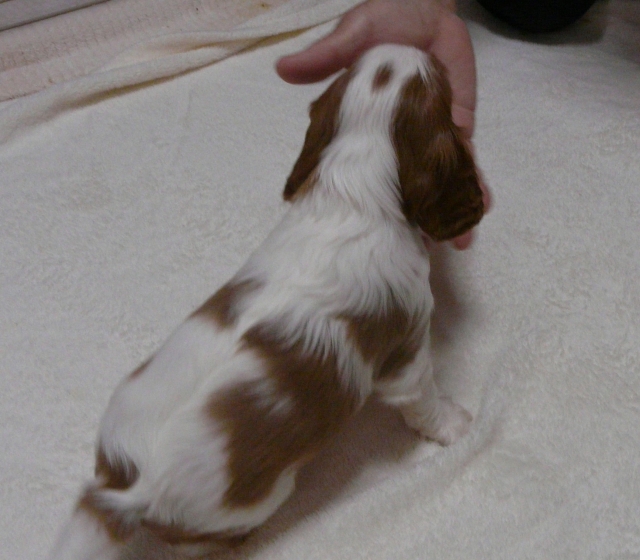 | コメント | 母親、ブレンハイム。 父親、ブレンハイム、チャンピオン直子。 家庭内で家族同様に暮らしております。 母乳をよく飲み、離乳食もよく食べ元気なしっかりした子です。 この子のサイズはスタンダードになると思います。 噛み合わせ、ヘルニア等問題ありません。 1回目のワクチン接種および健康診断の後のお引き渡しを予定しております。 とても活発で元気いっぱいに遊んでいます。 お迎えの時期は年明けでも大丈夫です。お気軽にお問い合わせください。 |