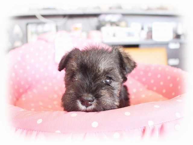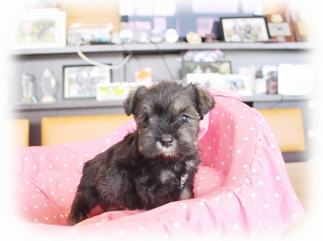 シュナウザーを主力にされているブリーダーさんだと認識しており、ボスちゃんはどうかなあと正直不安でしたがとても可愛く健康的なボスちゃんをいただきました。 掲載されていた写真より実物は想像以上に可愛くて即決し見学させていただいたその日に連れて帰りました。連絡をして、翌日行きますぅって勝手な申し出にも関わらず敏速かつ親切に対応して頂き大満足です。契約に対しても一つ一つ丁寧に説明してくださり、わかりやすかったです。この度は可愛いボスちゃんとのご縁をいただき、本当に有り難うございました。 (大阪府 女性)