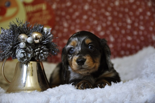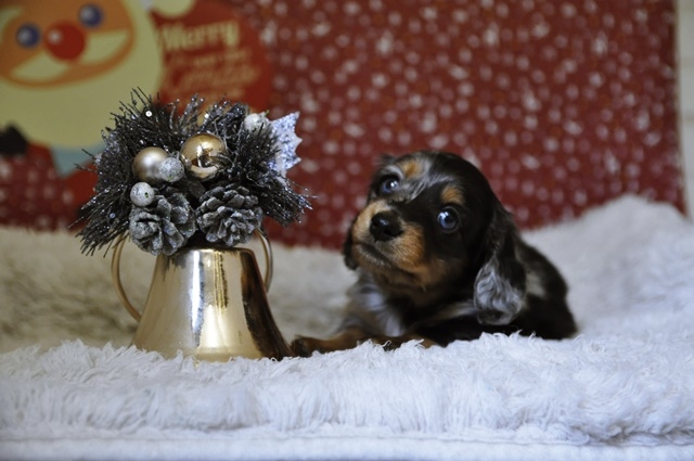 | コメント | 父 ブラックタン JKCチャンピオン直子 PRAクリア 母 シルバーダップル JKCチャンピオン直子 PRAキャリア 離乳食もしっかり食べ兄妹と仲良く遊ぶようになってきました。 目にシルバーダップルの模様が入りブルーアイですが目に障害が出る事はありません。ブルーアイはダップルの模様だと獣医さんから伝えていただいています。 健康面も全く異常もなく元気に育っています。 ☆引き渡しは12/30前後となります。 ☆家族同様の環境の中でストレスを与えない様、配慮しています。 ☆愛情一杯に育った両親の元に誕生した子です。 ☆見学についてのお願い。 午前中は犬舎のお掃除や食事をする時間となっています。午前11時から見学可能となります。 見学の際は前もって見学予約をお願い致します。 良きご縁がある事を願っています! |