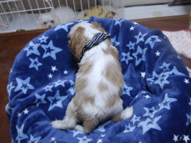 | コメント | お父さんはJKCチャンピオンの家斉君、お母さんはチャンピオン直子スカーレットちゃんから生れたダンディーな男の子です。(紺リボン君) 健康状態は、問題有りません。 すくすく育っています。 |