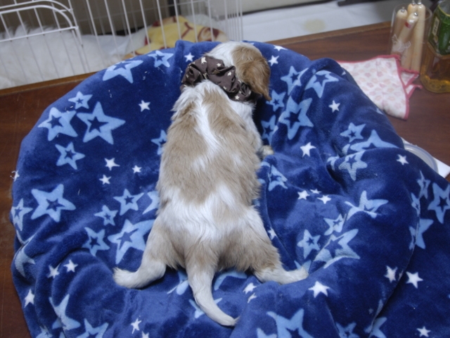 | コメント | お父さんはJKCチャンピオンの家斉君、お母さんはチャンピオン直子スカーレットちゃんから生れたダンディーな男の子です。(茶星リボン君) 健康状態は、問題有りません。 すくすく育っています。 |