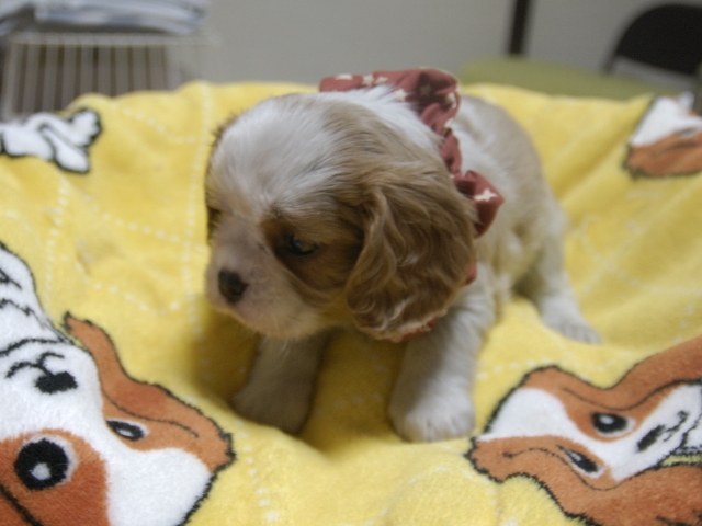 | コメント | お父さんはJKCチャンピオンの家斉君、お母さんはチャンピオン直子スカーレットちゃんから生れたキュートな女の子です。(赤星リボンちゃん) 健康状態は、問題有りません。 すくすく育っています。 |